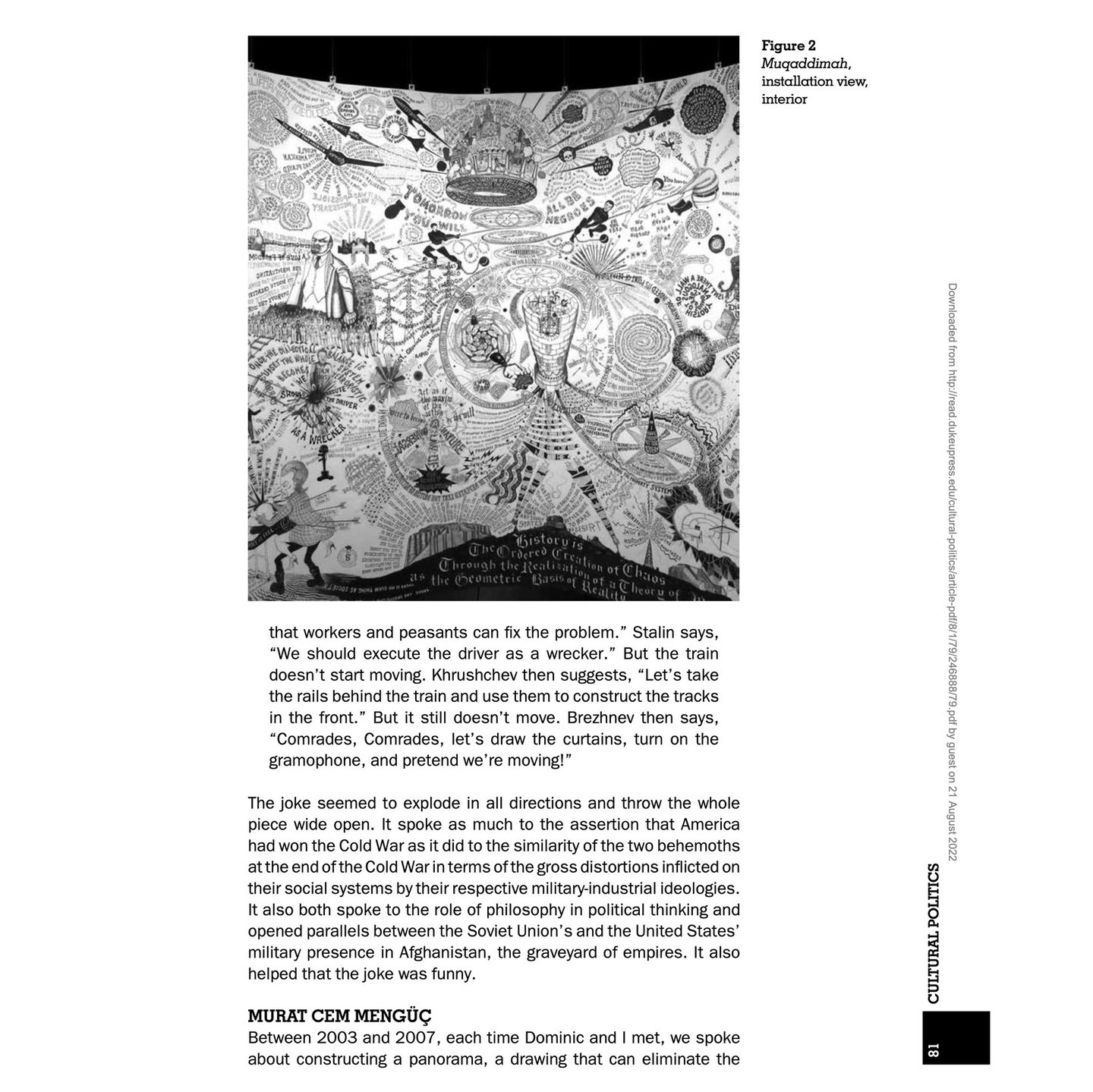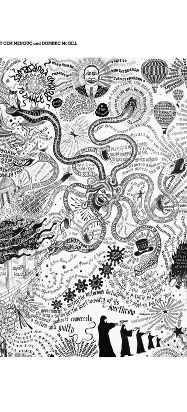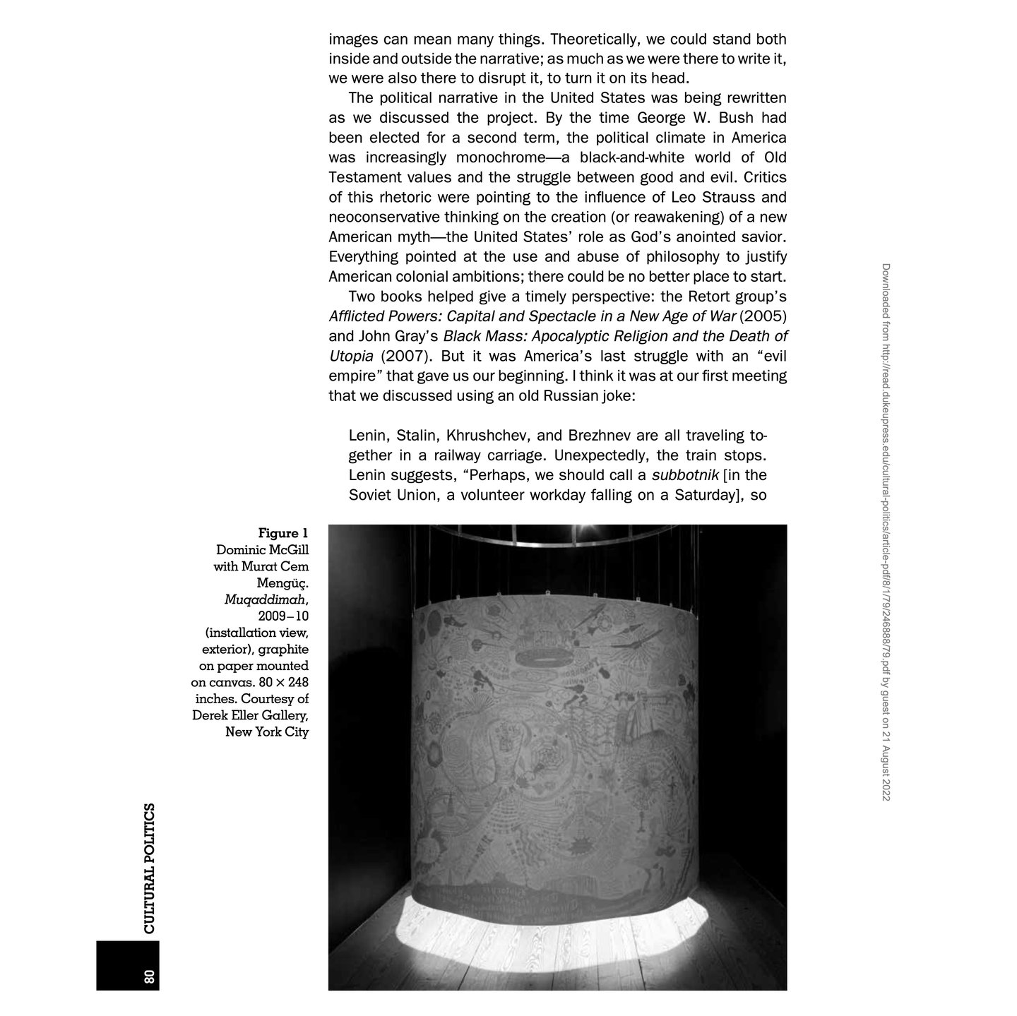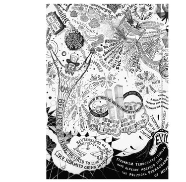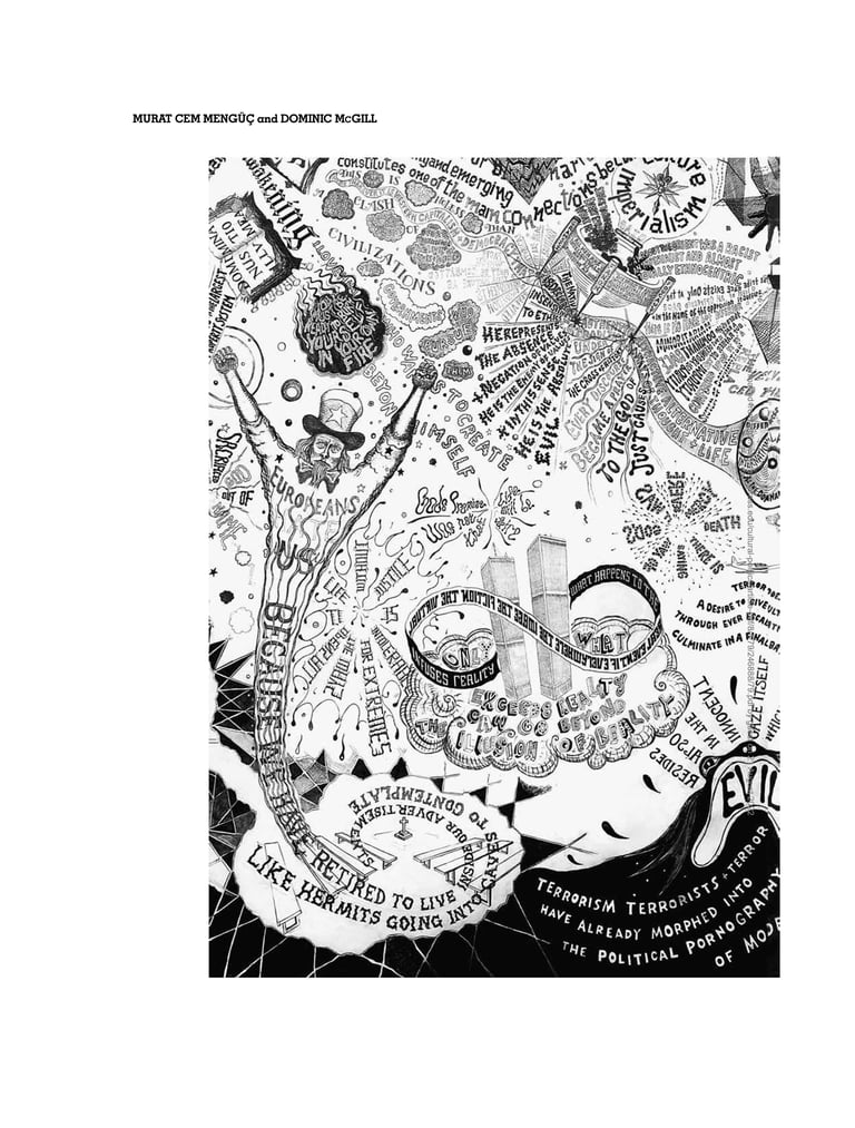 My dear friend and once collaborator, Dominic McGill passed away this week. He was a true force of nature, an unrelenting artist and a critique of everyday life, culture and politics. In 2008, we draw worked on a massive graphite piece which has been exhibited in New York and London a few times. This is what we wrote about the piece for the Cultural Politics. The world is a lesser place without him.