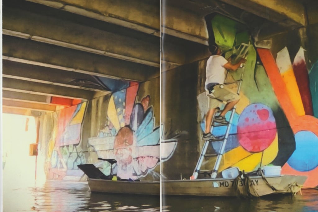 “There is a city (in my head)” Apoxy explains which suggests a utopia he has germinated over the years he spent on the river and now he wishes to share. Still calling them flowers, he adds, “I am not saying the flowers are graffiti, and I am not saying they are not… While I have painted a considerable amount of these in the studio, they undoubtedly belong in to the wild, on their native river.” Luckily, he also informs us that he has acquired a new boat and a new mooring, which means his work on the waterways will resume. Like his “flowers”, he belongs to the DC rivers.